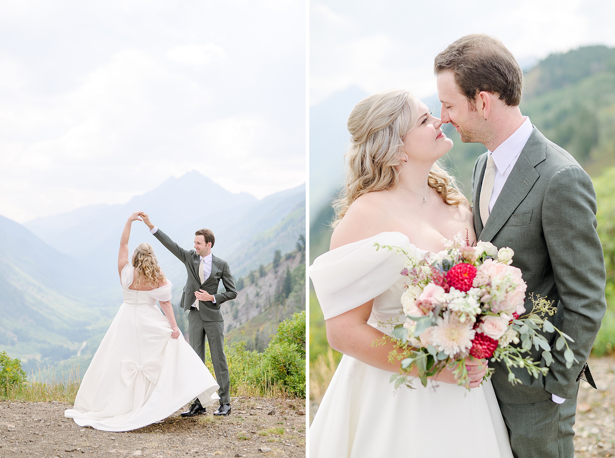 Before sunset, we slipped away for a few portraits on the mountain. The golden light across the Elk Range created the perfect glow, giving Zach and Emma portraits that feel both timeless and true to them.