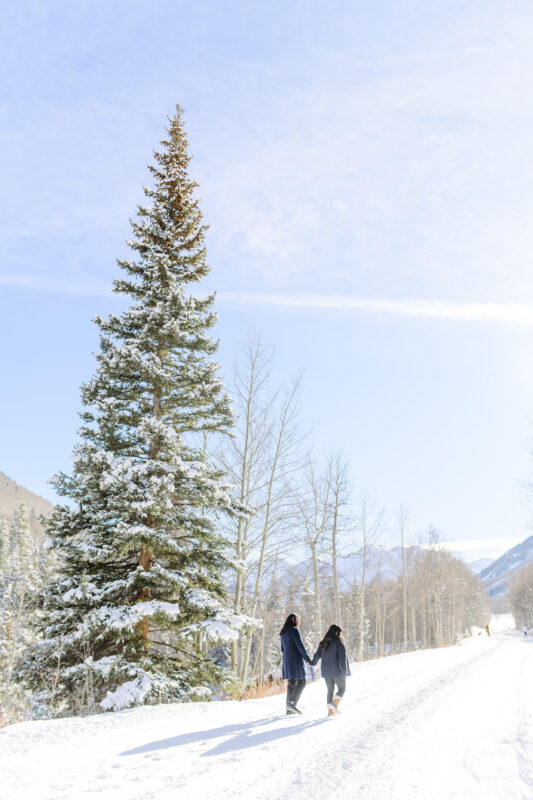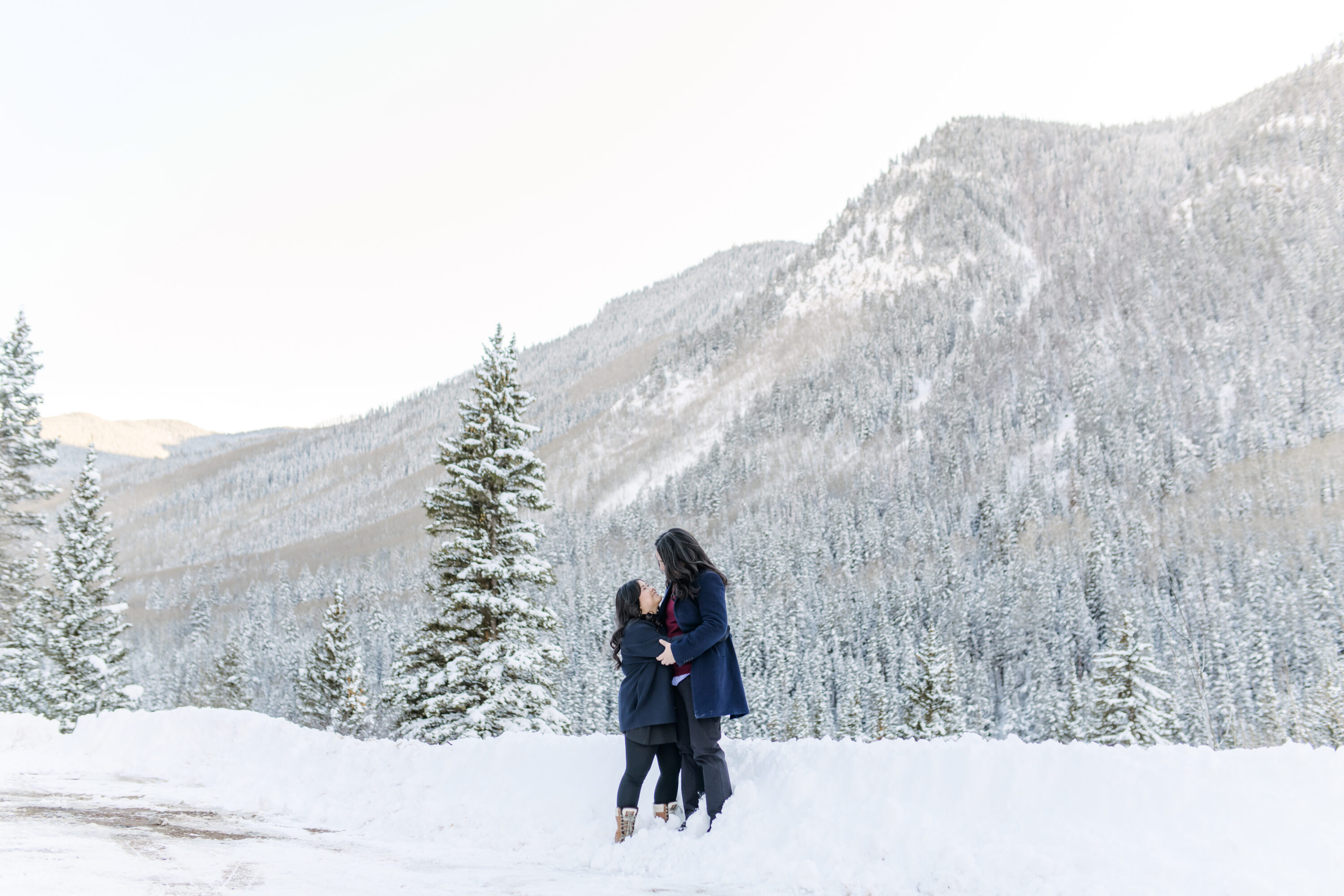 We kicked off by meeting at the Mollie Gibson Lodge lobby before heading out toward the mountains together. The drive into the valley set the tone for the session: peaceful, snowy, and incredibly romantic.