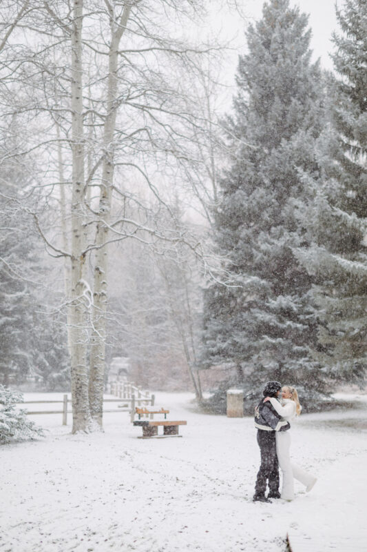 Despite the last-minute scramble, the moment itself was calm and beautiful. Edward led Samantha to the bridge, surrounded by the quiet of the falling snow, and got down on one knee. It was exactly the Snow Globe Proposal in Aspen he wanted. The joy on Samantha’s face made the quick pivot and the frantic scouting totally worth it.