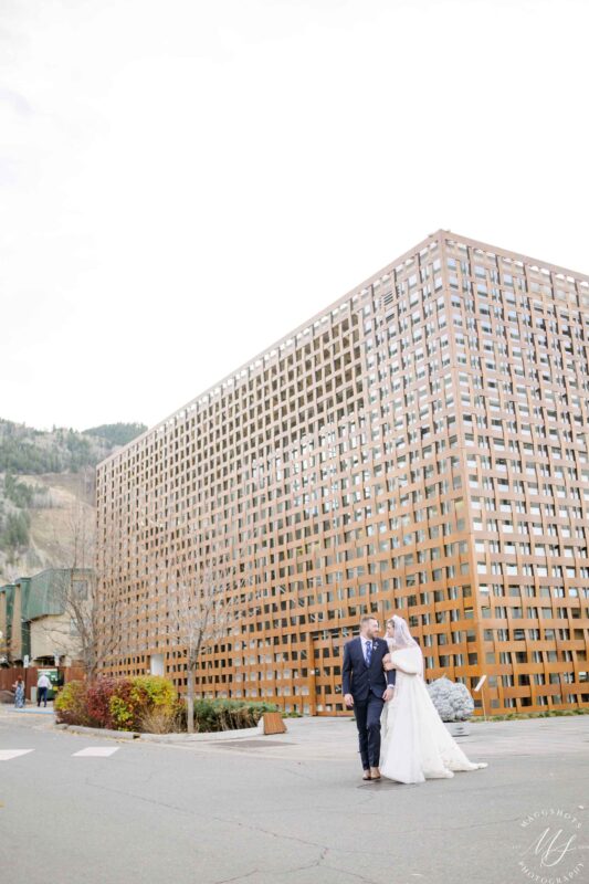 After the ceremony, we explored the area around the Aspen Art Museum and nearby downtown streets for portraits. The mix of architecture, mountain views, and city energy gave their photos a timeless and artistic feel.