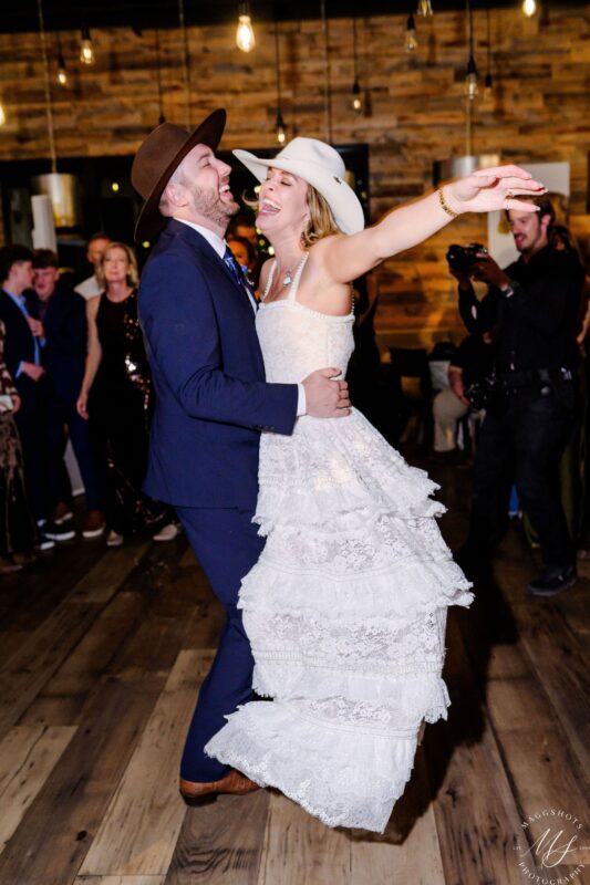 The celebration continued at Free Range Kitchen in Basalt. The space felt warm and welcoming, perfect for an evening of great food, heartfelt toasts, and dancing. As the night unfolded, the energy stayed high and joyful. From dinner to dancing, every moment reflected Chrissie and Byron’s love for gathering people and celebrating fully.